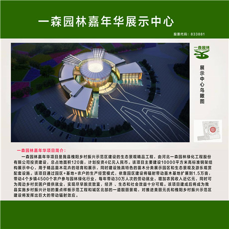 河北一森園林綠化工程股份有限公司創立于2012年,201510月在新三板掛牌上市,20175月進入創新層,是河北省在新三板掛牌上市的林業類企業之一。股票簡稱:一森園林,股票代碼:833881。一森園林是河北省農業產業化經營重點龍頭企業,河北省城市園林綠化行業4A級誠信企業,河北省特色苗圃,主營業務涵蓋苗木生產營銷、綠化工程建設、生態環保開發、旅游景觀打造和資源循環利用等領域,是集苗木產銷、景觀創意、工程規劃、設計施工、科技研發、水土修復和生態治理等為主導的綜合性生態產業系列化服務公司下設個全資子工程公司。公司榮獲中國國際電子商務中心評定的3A級信用企業、河北省誠信經營示范單位、河北省園林商會副會長單位、河北省林業產業協會副會長單位、河北省林業產業協會造林綠化分會副理事長單位、河北省種苗協會副會長單位和河北省林木種苗協會優秀企業創新獎等各類榮譽20多項。