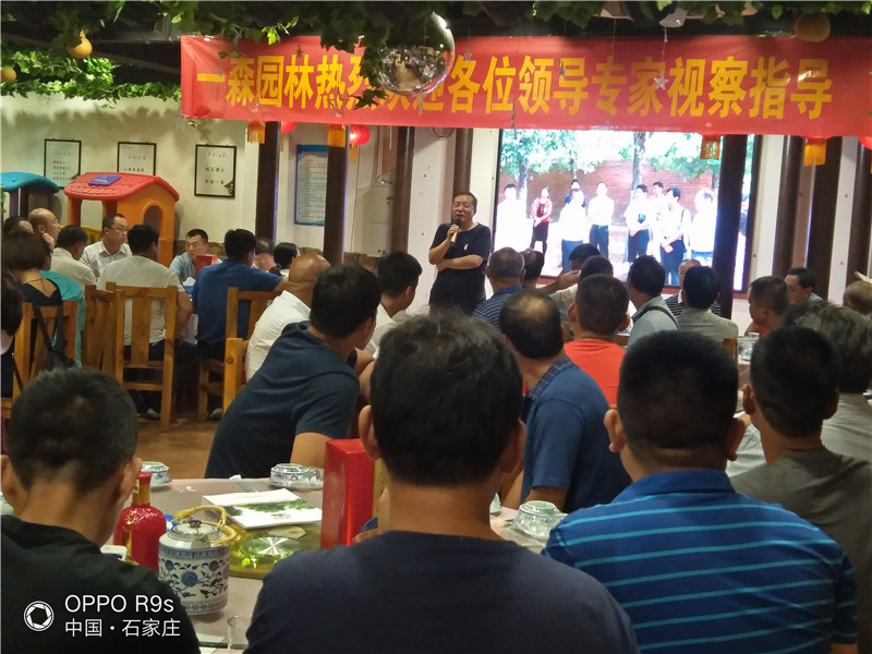 一森園林董事長耿軍林在招待晚宴上致歡迎詞,歡迎苗木界同仁、領導到一森園林參觀指導,攜手同進,共謀發展之路。