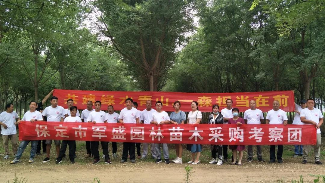 2020.7.15保定市軍盛園林組成的苗木采購考察團一行20余人,來到一森園林苗木基地,考察了老白蠟、國槐、法桐、金葉榆、丁香、楸樹、椿樹等。大家對一森園林的標準化苗木基地高質量管理一致稱贊,隨即與一森園林簽訂苗木購銷協議,售出大量一級品國槐、老白蠟等。